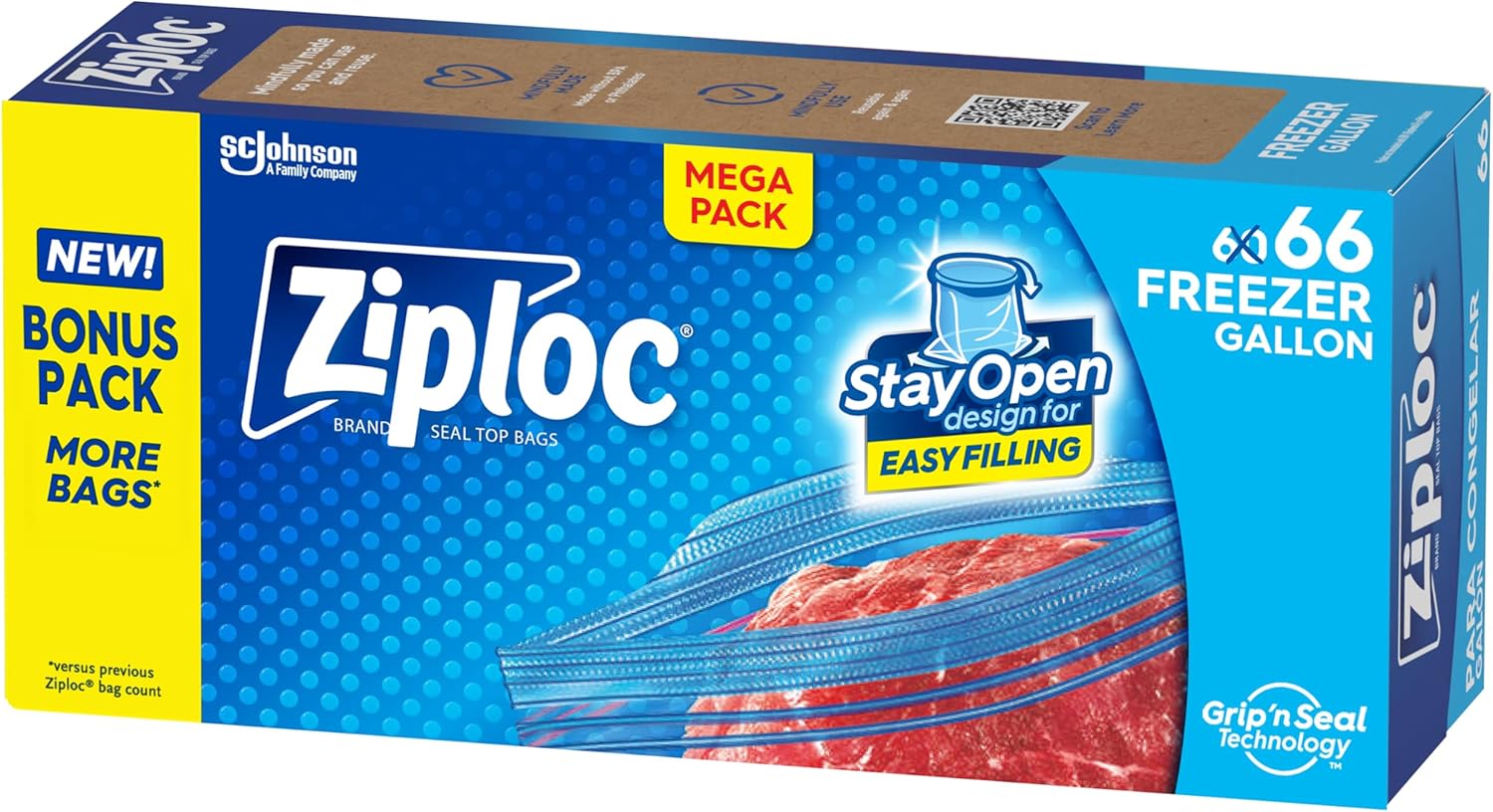 Show your food some love (and save some money while you’re at it!) with Ziploc Gallon Freezer Bags. We’re not saying we invented freezer bags, but with over 50 years of trusted Ziploc brand protection, we’re experts. Our exclusive 9 Point Protection* helps prevent freezer burn for up to 12 weeks (tested on ground beef) and helps keep your food fresh. That means less food waste and more delicious meals. Plus, our patented stand-up bottom and convenient fold line make filling a breeze. Whether you’re freezing, bulk buying, portioning or just repackaging, Ziploc Freezer Plastic Bags are a great solution. So go ahead, stock up on your favorites. Your freezer (and your wallet) will thank you. Because when you love food, you don’t let it go to waste. *Ziploc Brand Freezer Bags are the only bag designed with 9 Points of Protection based on a quarterly e‐ commerce category audit of Amazon, Walmart and Target. The audit was last conducted April 2025 by searching freezer bag with the combination of features described at https://Ziploc.com/freezer