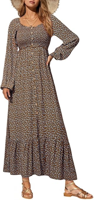 - Feature: Dokotoo fall dresses for women 2025 comes with Long Sleeve, Square Neck, Floral Print, Decorated Buttons Front, Stretchy Smocked Bust And Waist, Side Pockets, Maxi Length, Long Dress, High Waist, Flowy Ruffle Hem, A-Line , Swing Flared, Boho Style, Maxi dress fits for any body shape.