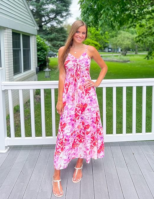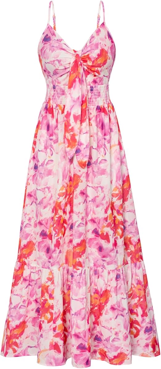 - Chic Design: The Casual Summer Dress has a sexy tie-front design. The tie adjusts to make it as tight as you need it, and a sexy midriff cutout perfectly shows off your flattering curves. The ruffle hem and floral print add more playfulness to the long dress.