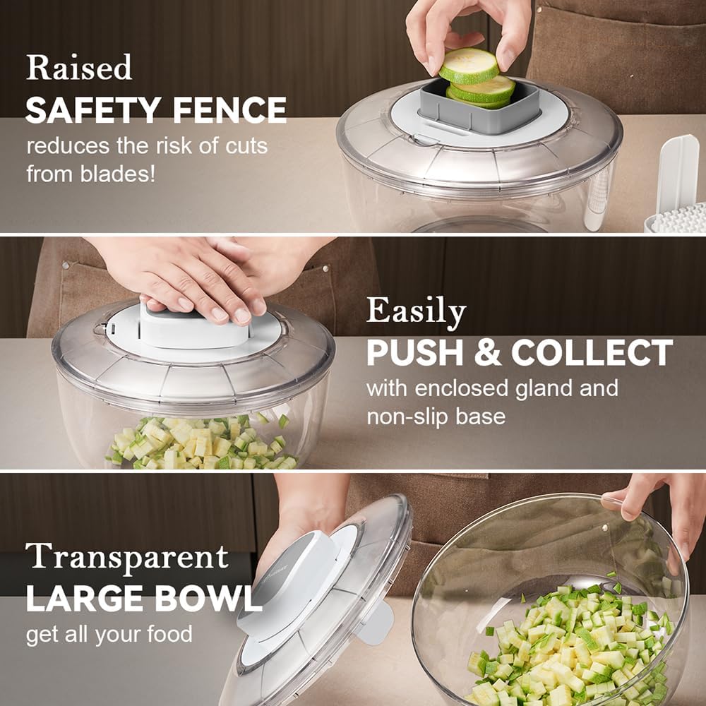 - High-Capacity & Durable: The 4.2Qt food-grade bowl provides ample space for large batches, ideal for families or meal prep; dishwasher-safe components ensure easy cleanup, making it a reliable onion chopper, french fry cutter, or daily salad tool.