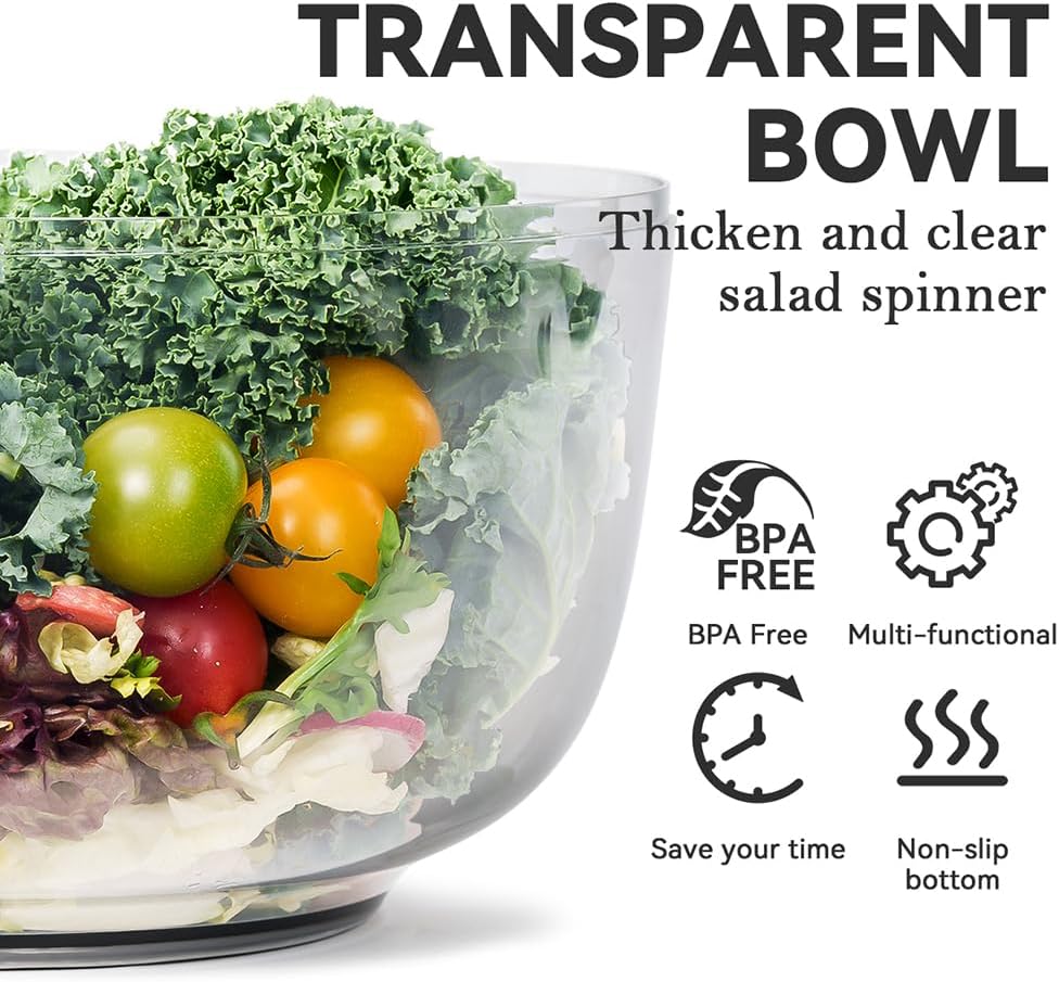 - Powerful Salad Spinner: Wash and dry lettuce, veggies, or herbs in the extra-large 4.2Qt transparent bowl; the efficient hand-crank spinner removes water fast for crisp, clean salads with better flavor, reducing waste.