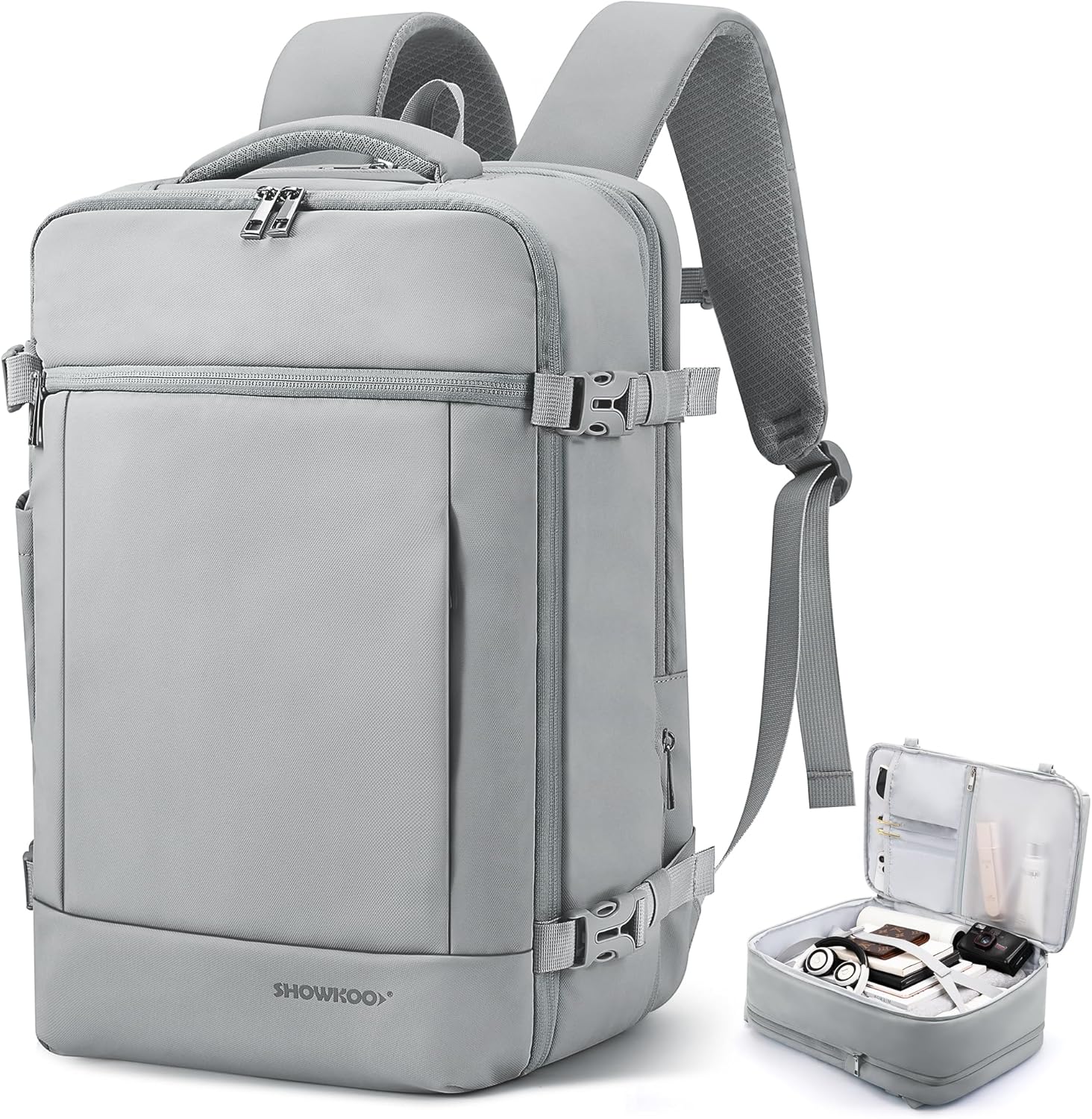 Sale!SHOWKOO 40L Travel Backpack for Men & Women, Airline Approved Carry On Laptop Backpack Fits 17.3″, Waterproof Personal Item Bag Expandable Large Capacity Weekender Backpack